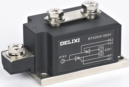 MTC, MTX series thyristor module is a switching element, and can work under high voltage and high current conditions, and its working process can be controlled. With high-power thyristor chip or rectifier chip as the core, two chips are combined into a module according to a certain circuit structure to realize switching and voltage regulation function. It is widely used in circuits of industrial heating control, AC voltage regulation, motor control, contactless switch, reactive power compensation, inverter and frequency conversion, and battery charge and discharge. The product has advantages of reliable operation, long serve life, no noise, no contact, no spark, no electromagnetic interference, fast switching speed, strong anti-interference ability, small size, impact resistance, oscillation resistance, explosion-proof, moisture-proof, and anti-corrosion features.