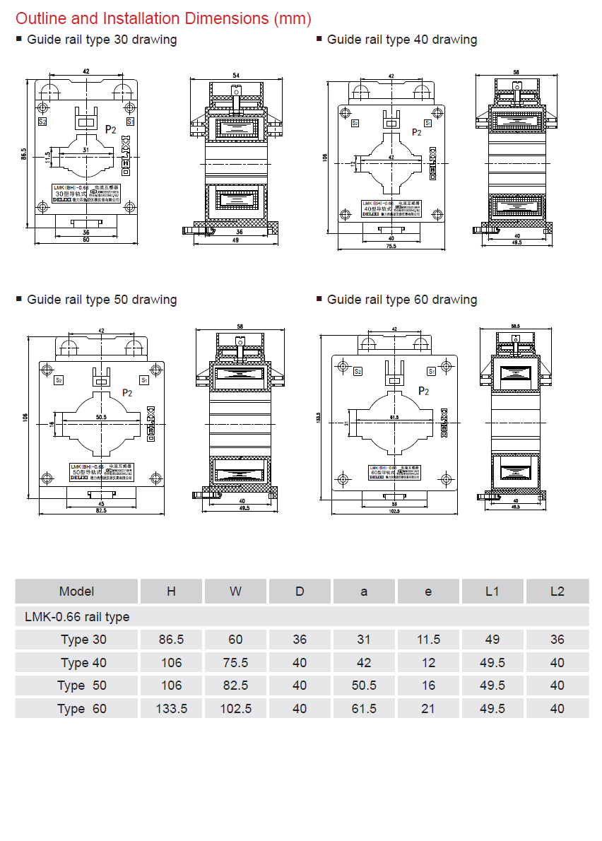 For rail type low-voltage current transformer, its plastic shell is made of PC flame retardant alloy material with good electrical insulation, corrosion resistance, heat resistance, wear resistance, impact resistance, and stability. The product has a matching base for easy and quick installation, stronger consistency, and artistic and novel appearance. It is suitable for 66kV and below AC circuits for measuring and monitoring current and electric energy, and the product performance conforms to the standard GB 20840.1&2