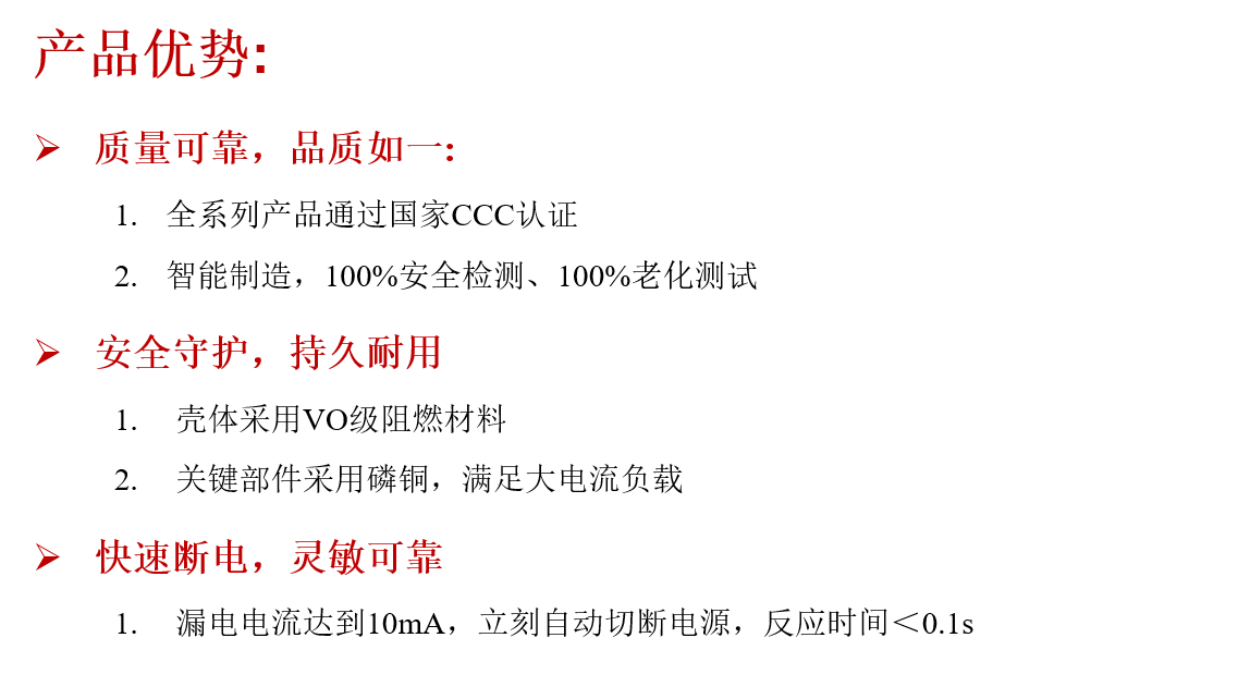 The series leakage protection switch sockets products launched by our company include leakage protection plugs, leakage protection sockets, and household leakage protection switches. The product is widely used in various household appliances such as water heaters and air conditioners for electric leakage protection.