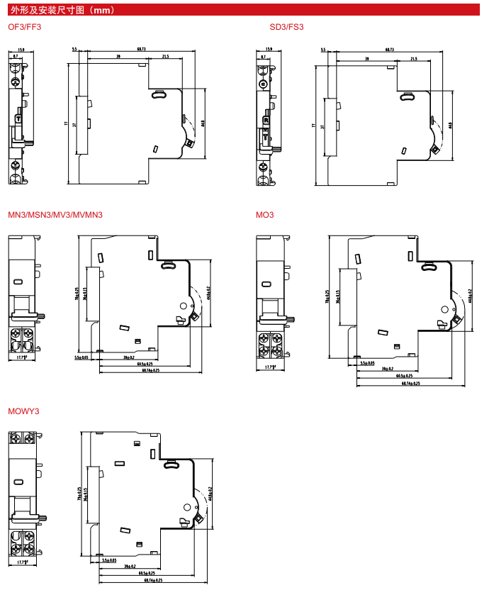 FS3 series auxiliary contacts (auxiliary contacts with alarm function) are mainly used in AC 50/60Hz alarm circuits with a rated voltage not exceeding 415V and a rated current 1A~6A. This series of auxiliary contacts can realize the opening and closing indication of remote circuit breaker by remotely connecting signal lights, and also realize the fault trip alarm function of remote circuit breaker by remotely connecting an alarm.