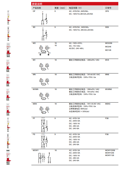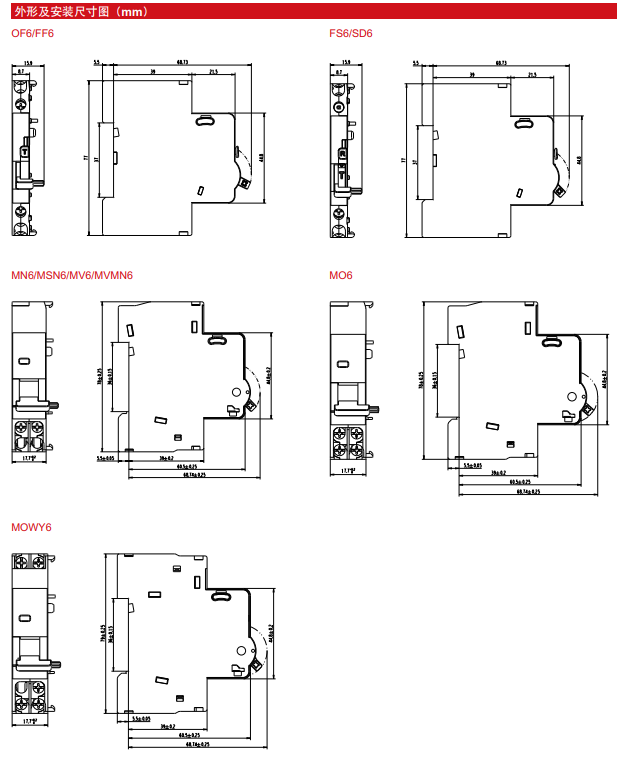 OF6 series auxiliary contacts are mainly used in AC 50/60Hz auxiliary circuits with a rated voltage not exceeding 415V and a rated current 1A~6A. This series of auxiliary contacts can remotely display the opening and closing status of the circuit breaker by remotely connecting signal lights.