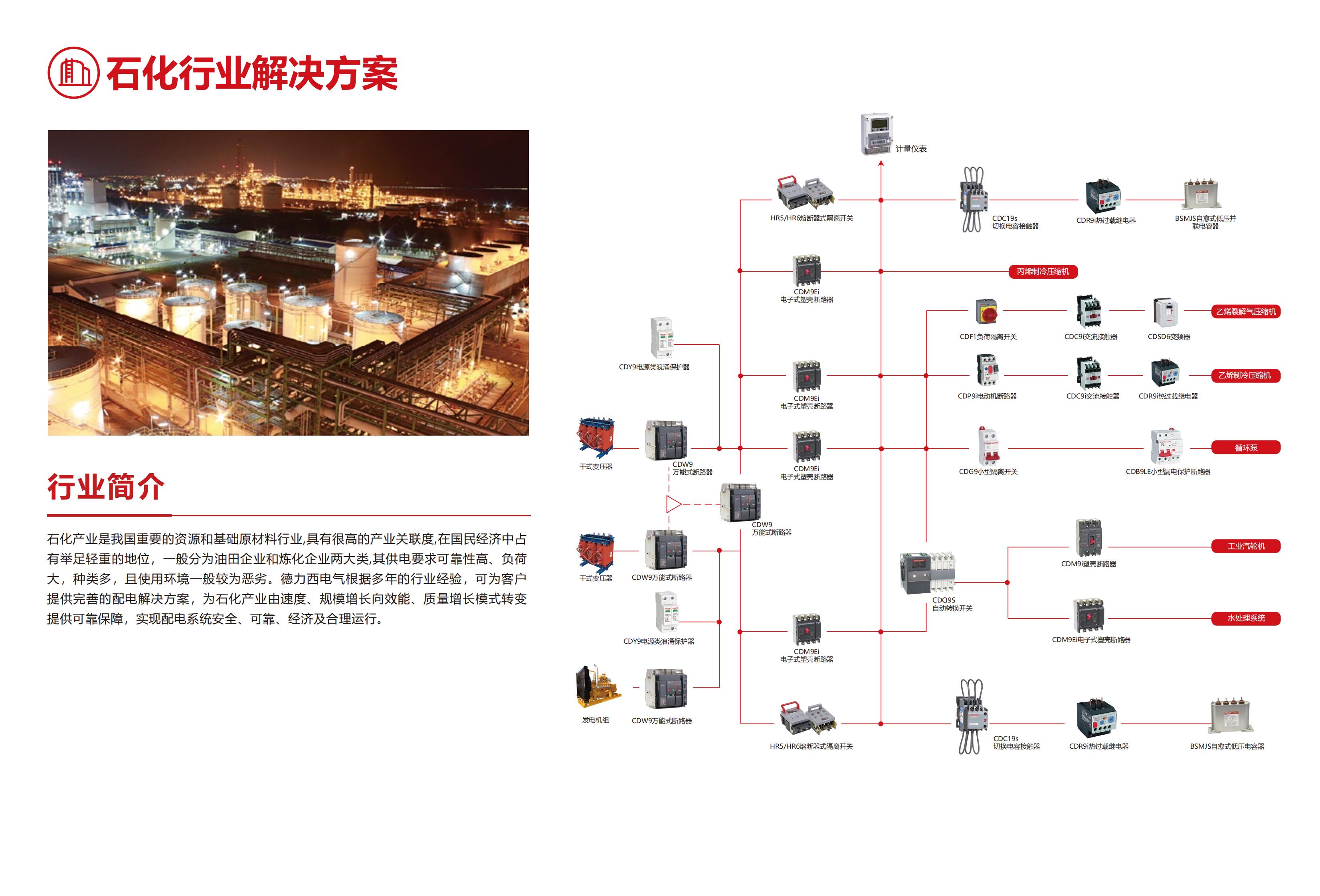 Petrochemical industry is the important resources and basic raw materials industry in China, has a high correlative degree of industry, and plays an important role in the national economy. It is generally divided into two categories: oilfield enterprises and refining enterprises, featuring with high reliability of power supply, large load, many types, and its working environment is generally harsh. With years of industry experience, Delixi Electric can provide customers with perfect power distribution solutions, providing reliable guarantee for the transformation of petrochemical industry from speed and scale growth to efficiency and quality growth mode, and realizing the safe, reliable, economical and reasonable operation of the power distribution system.