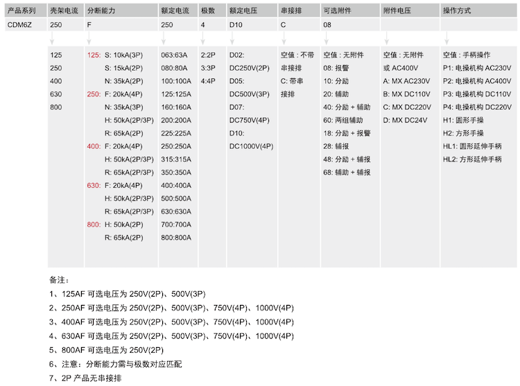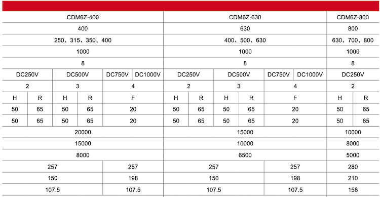 CDM6Z DC moulded case circuit breaker has a rated voltage DC 250V/500V/750V/1000V and a rated current ranged 63A ~ 800A. With a new arc extinguishing and contact design, this series can be efficiently and perfectly used in the DC application environment, widely suitable for DC applications such as photovoltaic power generation, OEM DC screen, power plant, charging pile, communication industry, and rail transit for electric energy distribution and for line and power equipment protection to avoid risks caused by overload or short circuit fault. Note: The series copper busbar is an optional accessory, and its picture is for reference only and the actual product will prevail.