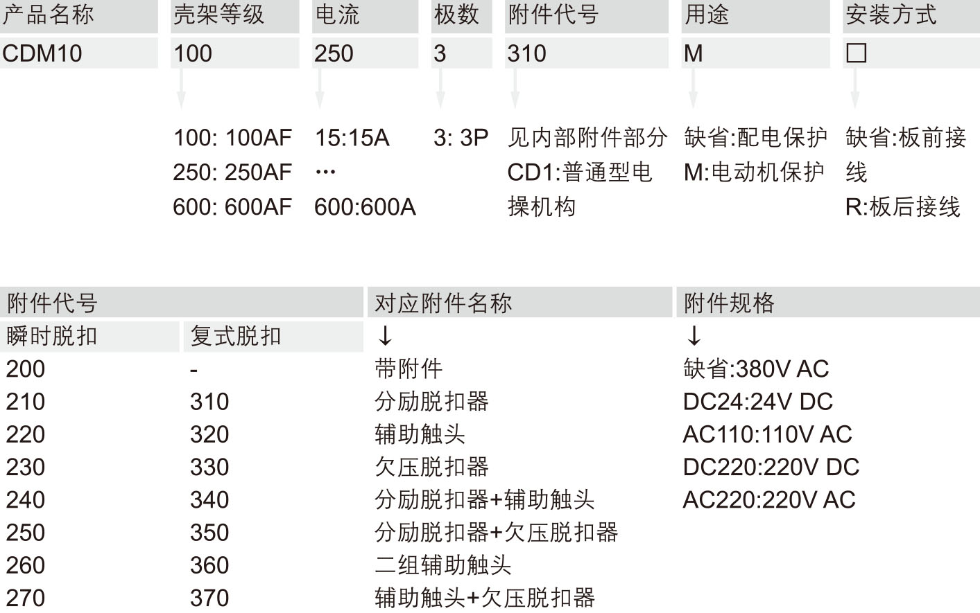 Suitable for electric energy distribution, provide overload, undervoltage and short circuit protection of line and power supply equipment; those with 250A and below provide overload and short circuit protection for the motor.