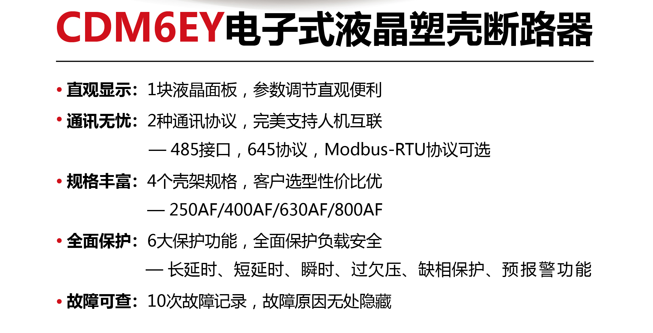 Home page >Products >Power Distribution Products >Power Distribution >Moulded Case Circuit Breaker (MCCB) >Moulded Case Circuit Breaker >CDM6EY Electronic Moulded Case Circuit Breaker