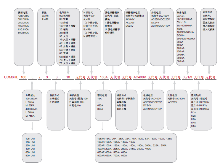 CDM6HL series residual current operated circuit breaker (hereinafter referred to as: CDM6HL) has its main function to provide indirect contact protection for personal electric shock that causes fatal danger, and to provide protection for electrical fire caused by ground fault current, such as insulation damage. It can provide the protection of circuits and equipment in case of overload, short circuit, or undervoltage (accessory function) of the power distribution line.