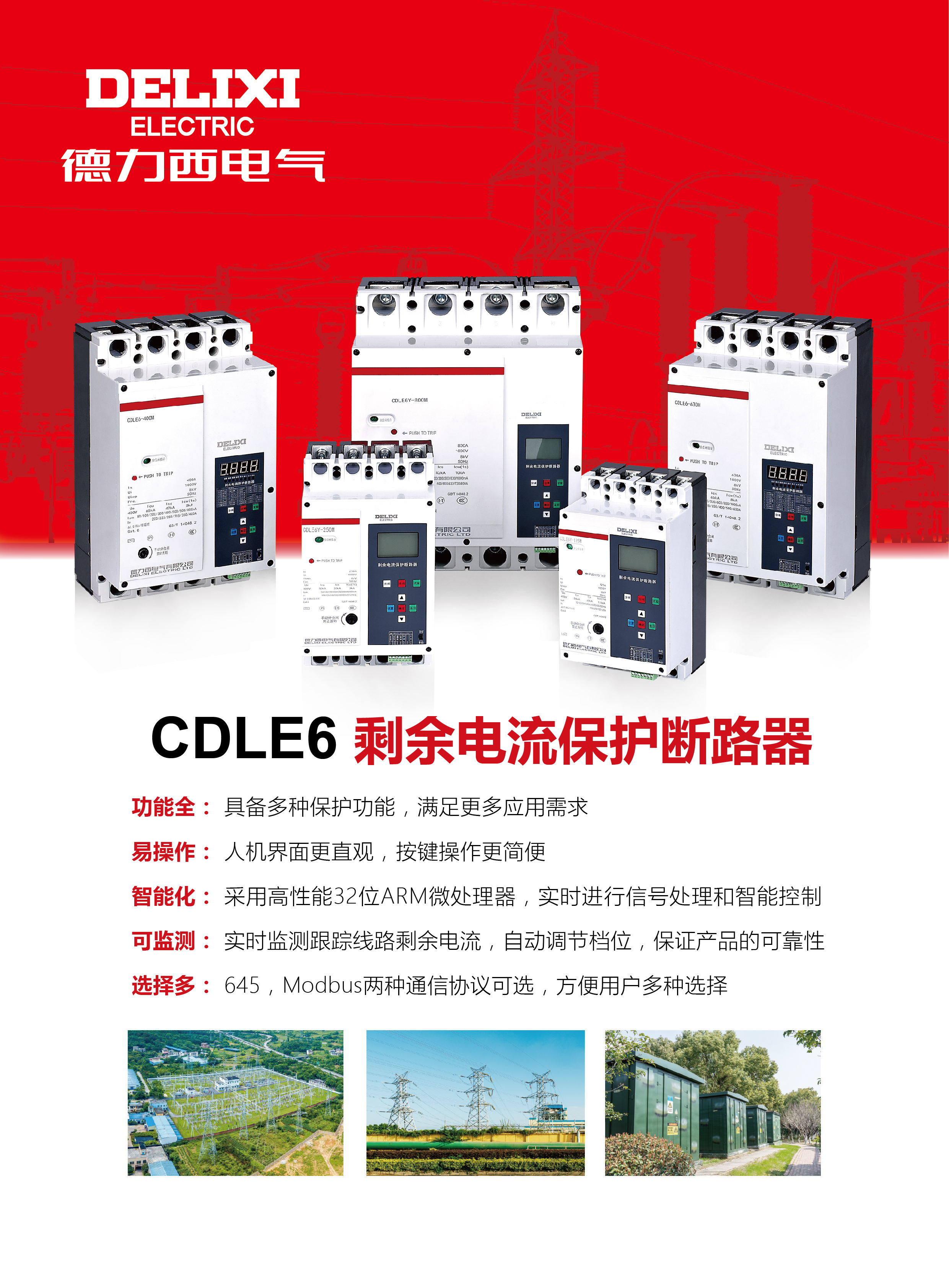 CDLE6 residual current protection circuit breaker is suitable for AC 50Hz three-phase four-wire neutral point direct grounding (TT) distribution network with a rated voltage 400V and a rated current up to 800A to provide protection against indirect contact and to prevent fire hazard caused by ground fault current due to equipment insulation damage. It is sued for electric energy distribution and for protection of lines and power equipment to prevent faults hazards such as overload, undervoltage, short circuit, and single-phase grounding. CDLE6 residual current protection circuit breaker is an integrated, multi-functional, and communicative residual current operated circuit breaker with adjustable load current in line with the intelligent requirements of smart grid management, especially suitable for comprehensive protection at all levels of urban and rural power grid, and it is the first choice for national smart grid.