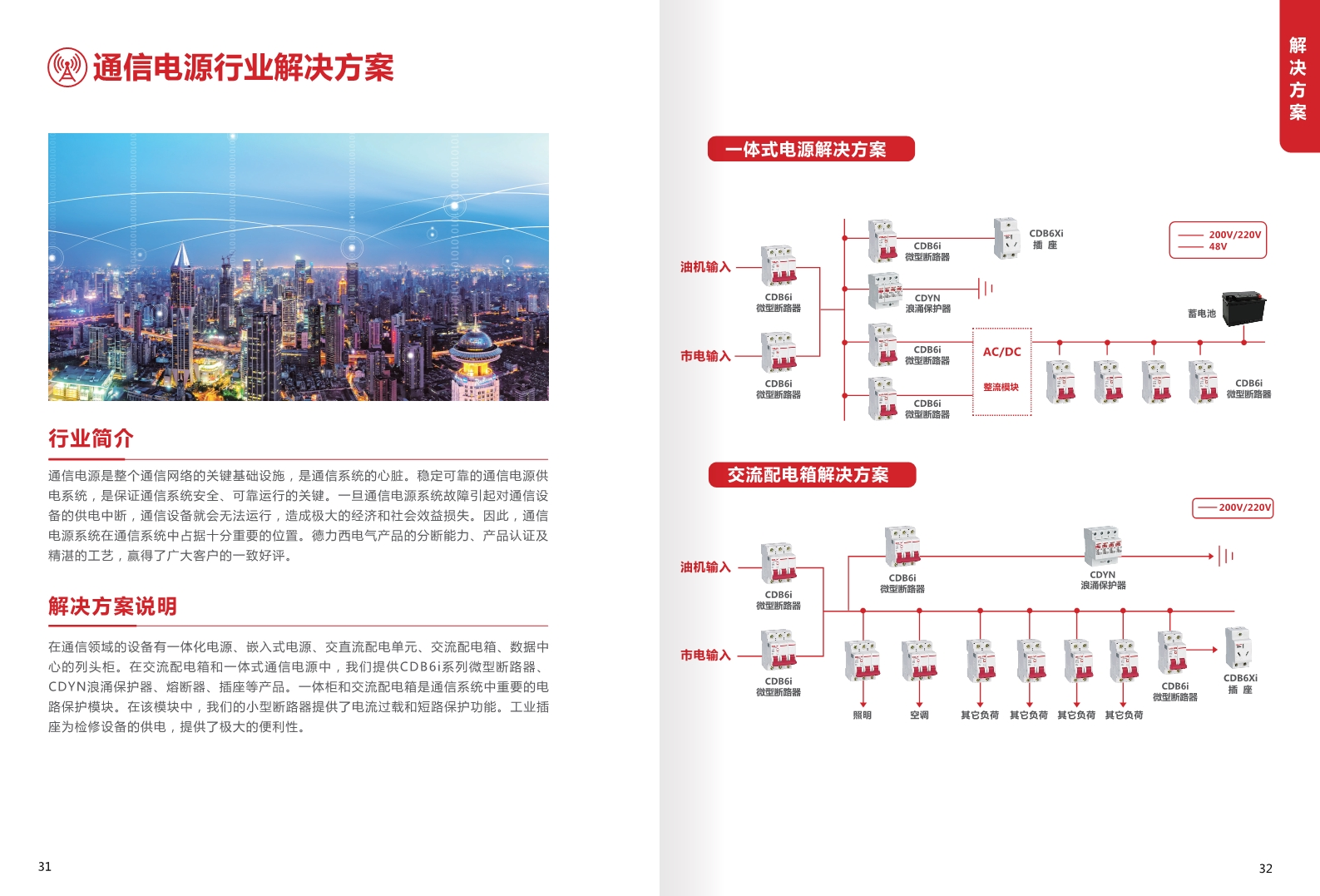 Equipment in the communication field has an integrated power supply, an embedded power supply, an AC and DC power distribution unit, an AC distribution box, and an array cabinet in the data center. In AC distribution box and integrated communication power supply, CDB6i series miniature circuit breaker, CDYN surge protector, fuse, and plugs are provided. The integrated cabinet and AC distribution box are important circuit protection modules in the communication system. In this module, miniature circuit breakers provided by our company provide current overload and short-circuit protection. Industrial sockets provide great convenience in the power supply to the inspection equipment.