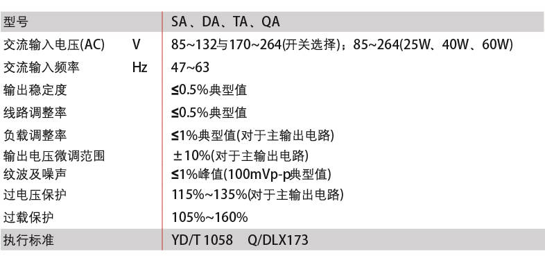 The use of imported components and built-in EMI filter provides good anti-interference performance, AC inrush current limit, small output ripple, low noise, and high work efficiency, featuring with short circuit, overload, and overvoltage protection function, as well as good insulation performance, high dielectric intensity, low working temperature, long service life, and wide input voltage range in line with global standards.