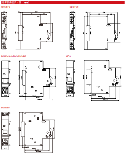 SD9 series auxiliary contacts are mainly used in AC 50/60Hz auxiliary circuits with a rated voltage not exceeding 415V and a rated current 1A~6A. This series of auxiliary contacts can remotely display the fault trip alarm function of remote circuit breaker by remotely connecting an alarm.